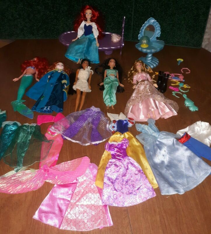 Title (ebay affiliate link): Disney Princess lot Doll furniture Clothes Ariel Jasmine Brave Sleeping Beauty