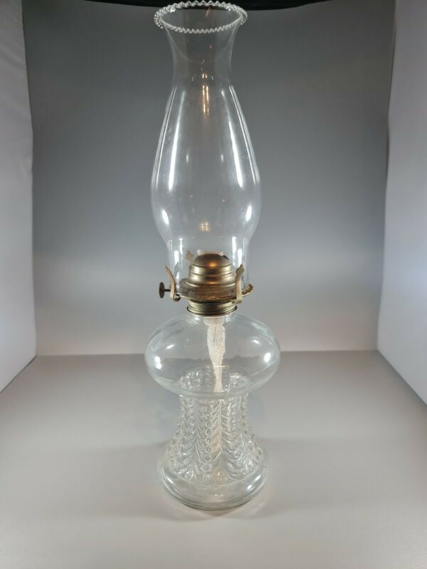 Title (ebay affiliate link): Vintage Paraffin Oil Lamp Tall Clear Glass FARMS AUSTRIA