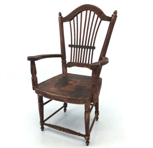 Antiqued Wooden Doll Toy Chair 9.5in Sheaf Back Teak Stain Rustic (bear not inc)