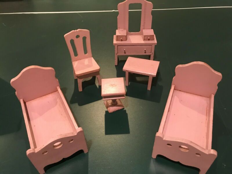 Title (ebay affiliate link): VINTAGE STROMBECKER DOLLHOUSE FURNITURE WOOD PINK BEDROOM Items 1930s