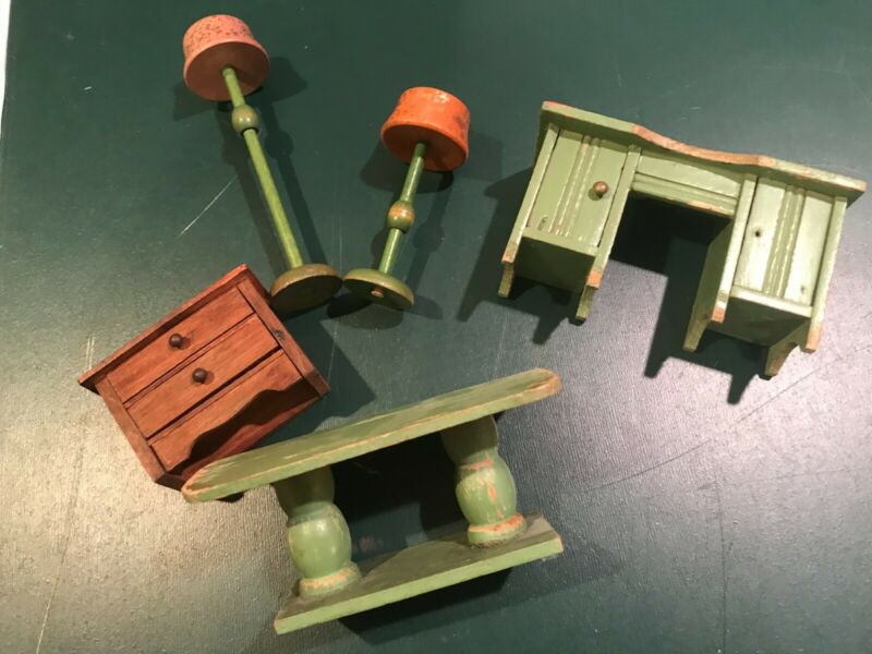 Title (ebay affiliate link): Vintage Doll House Furniture and Lamps Green 1930s