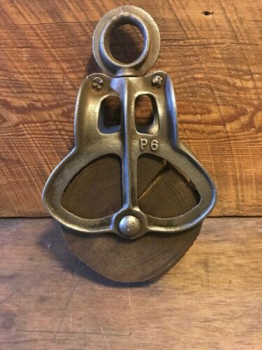 Title (ebay affiliate link): Antique Vintage Cast Iron 10 " P6 Wood Wheel Farm Barn Hay Trolley Pulley