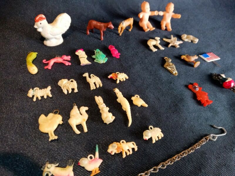 Title (ebay affiliate link): VINTAGE CRACKER JACK PRIZES TOY LOT JAPAN CELLULOIDS METAL GUMBALL CEREAL 40''S