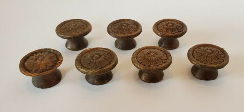 Title (ebay affiliate link): 7 Antique Oak Pressed Face Gold Knobs for Spool Cabinet?