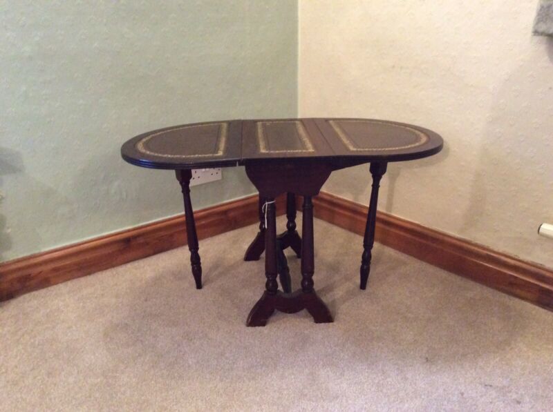 Title (ebay affiliate link): Vintage Occasional Table. Drop-Leaf Side Table. Leather Top Coffee Table. V25.