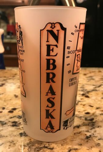 Title (ebay affiliate link): Vintage Frosted Yellow Hazel Atlas Souvenir State Glass Nebraska Pink