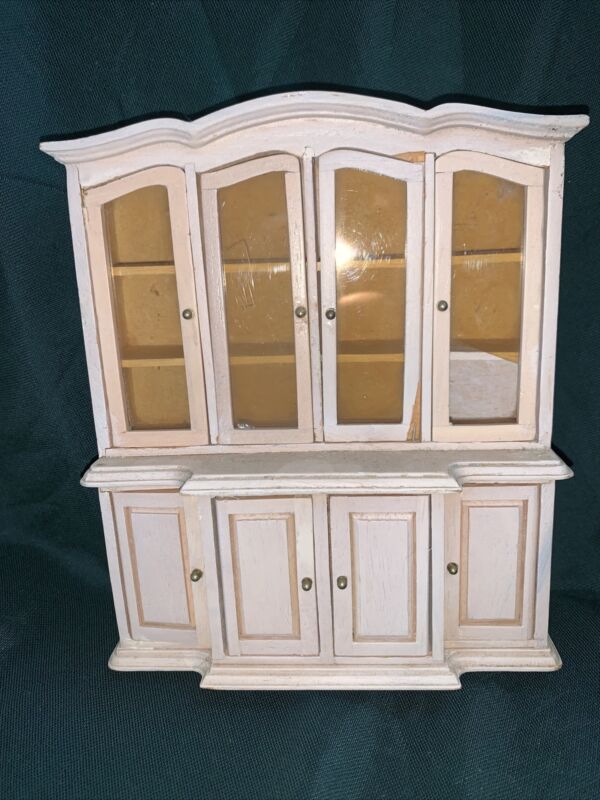 WHITE Cream Wood China CABINET VINTAGE DOLLHOUSE FURNITURE MINIATURES