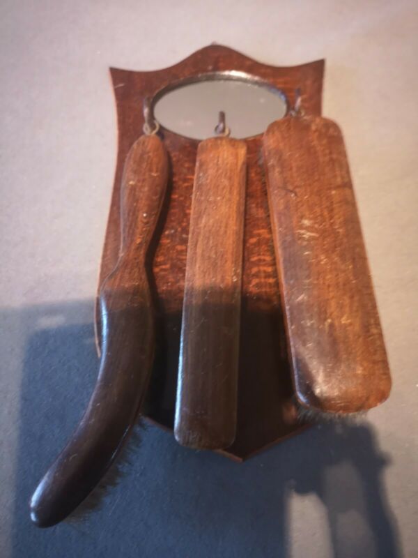 Title (ebay affiliate link): Antique / Vintage Wood Mirror With 3 Hanging Matching Brushes