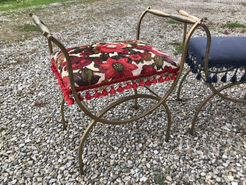 Title (ebay affiliate link): Vintage Red Hollywood Regency Bench with Wood Handles Vanity Chair 1