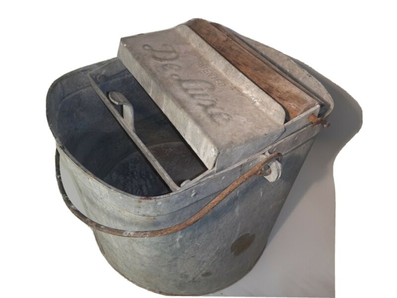 Vintage Deluxe Mop Bucket Wood Wringer Schlueter Mfg Galvanized Metal Pail TSH0
