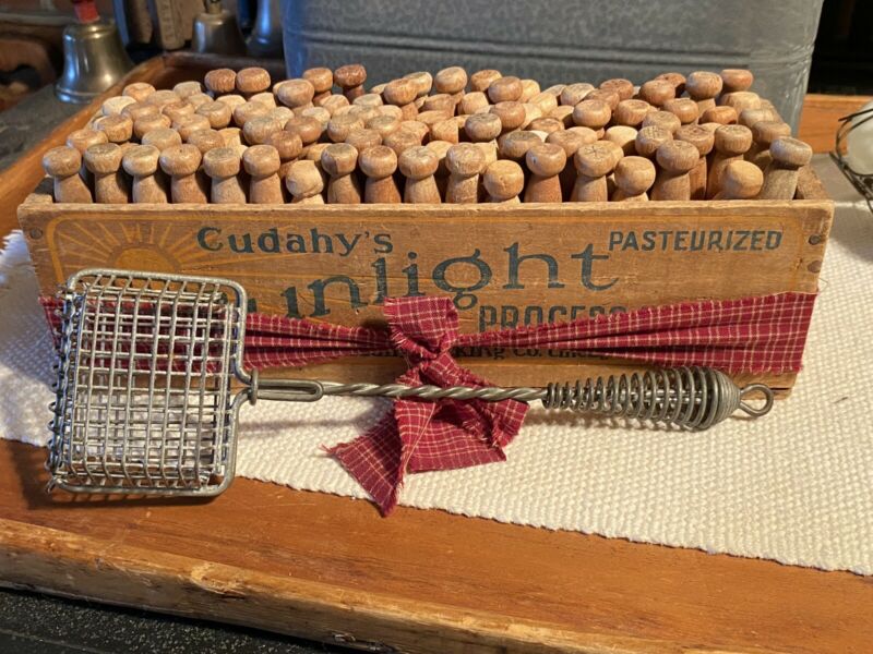 Antique Vintage Laundry Room Lot Cheese Box 100+ Wood Clothes Peg Pin Soap Saver