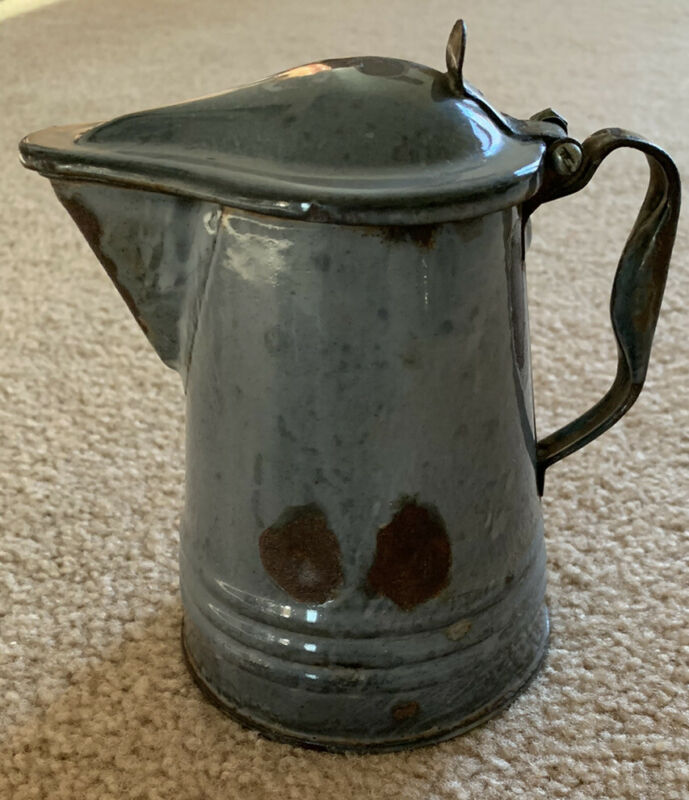 Title (ebay affiliate link): Antique Gray Graniteware Enamelware Lidded Syrup Pitcher Primitive Farmhouse