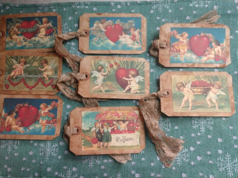 Title (ebay affiliate link): Valentine''s Day Hang Tags Children with Lace and small rhinestone LARGE TAGS