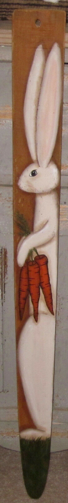 *~*PRIMITIVE*~* HP FOLK ART PRIM BUNNY * CARROTS * SPRING *~* 36" MINK STRETCHER
