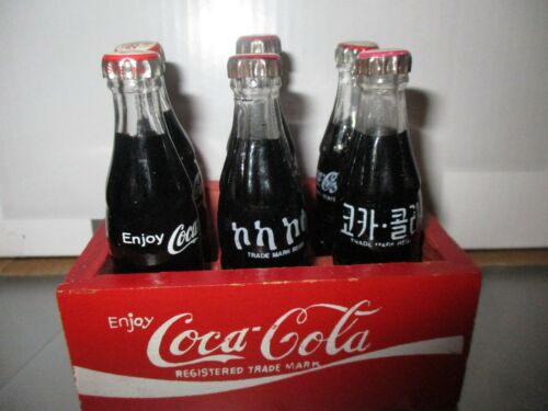 Title (ebay affiliate link): 6 ASSORTED MINI COCA-COLA BOTTLES, IN WOODEN CASE c 1974 3 INCHES TALL