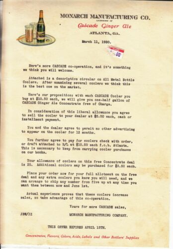 Title (ebay affiliate link): MONARCH MANUFACTURING CO. INVOICE DATED MARCH 11, 1930 SOLD SODA FLAVORS