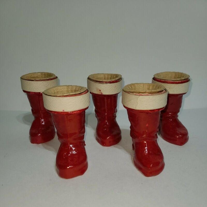 Title (ebay affiliate link): Lot Of 5 Vintage Paper Mache Santa Boot Candy Holder Holiday Decor Santa Claus