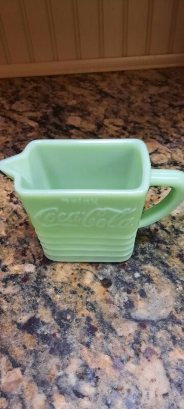 Title (ebay affiliate link): Vintage Ribbed Art Deco Green Jadeite Coca Cola Creamer Pitcher Milk Glass MINT