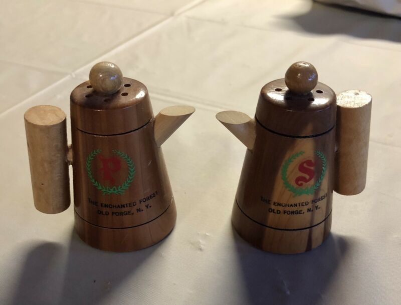 Vintage Salt and Pepper Shaker Set- Wooden Set Enchanted Forest, Old Forge, NY