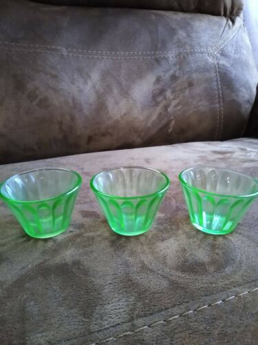 Vintage Green Depression Glass Custard/Nut Cups - Set of 3