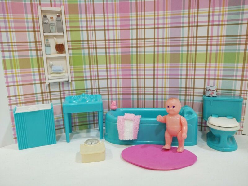 Title (ebay affiliate link): Plasco TURQUOISE BATHROOM SET /Renwal DOLL Vintage Miniature Dollhouse Furniture
