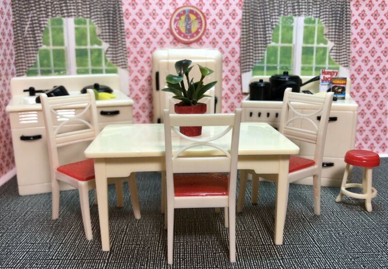 Title (ebay affiliate link): Renwal COMPLETE KITCHEN Vintage Dollhouse Furniture Miniature Ideal Plastic 1:16