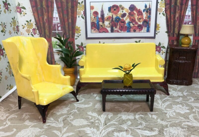 Title (ebay affiliate link): Ideal LIVING ROOM SET Renwal RADIO Vintage Tin Dollhouse Furniture Plastic 1:16