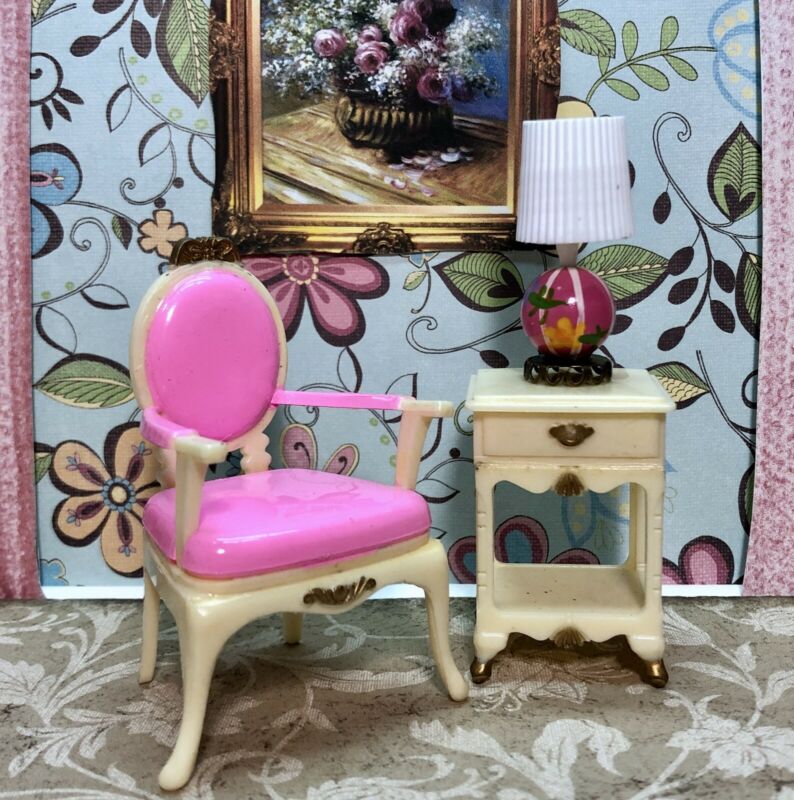 Title (ebay affiliate link): Marx LITTLE HOSTESS BEDROOM CHAIR SET Vintage Dollhouse Furniture Renwal Plastic