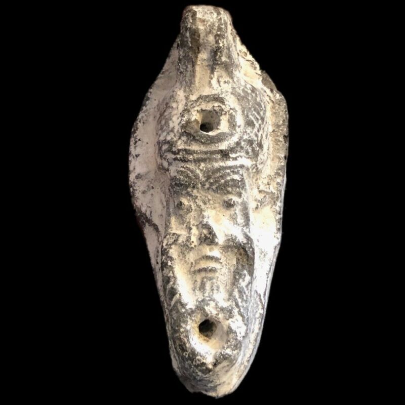 Title (ebay affiliate link): RARE BEAUTIFUL ANCIENT EGYPTIAN OIL LAMP WITH ZOOMORPHIC BUST 300 BC (1)