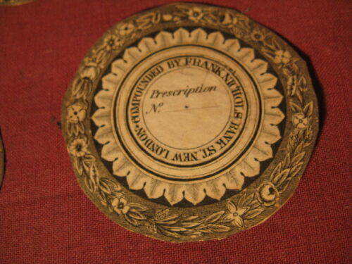 Lot Of 4 Antique 19th C Prescription Labels Frank Nichols Bank St New London Ct.
