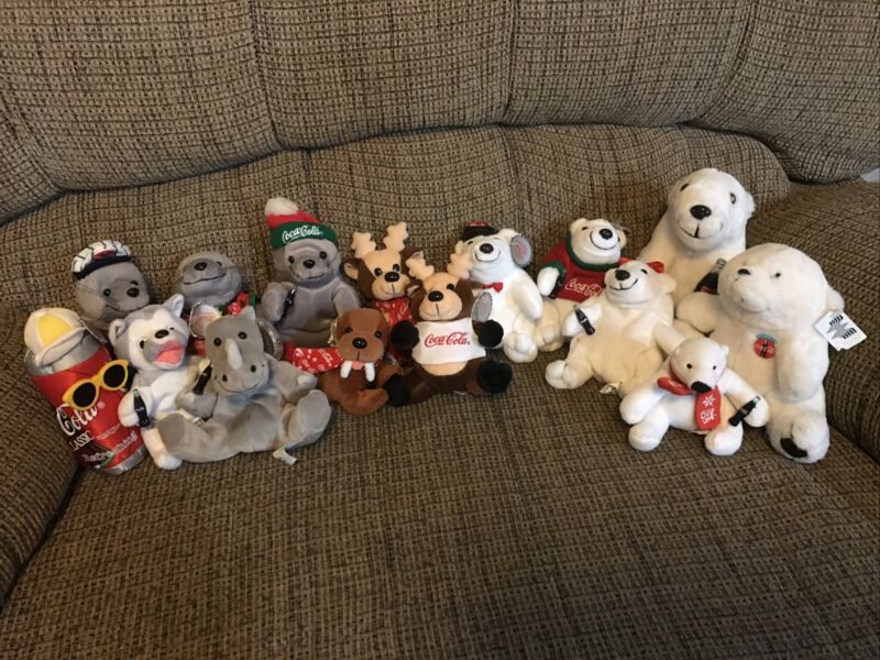 Title (ebay affiliate link): Coca-Cola Lot of 15 Various Plush Stuffed Animals.