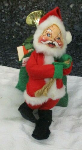 Vintage Annalee Christmas Santa Clause w Bag of Presents & Trumpet