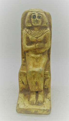 Title (ebay affiliate link): SCARCE ANCIENT EGYPTIAN GOLD GILDED STONE STATUETTE OF A SEATED PHAROAH