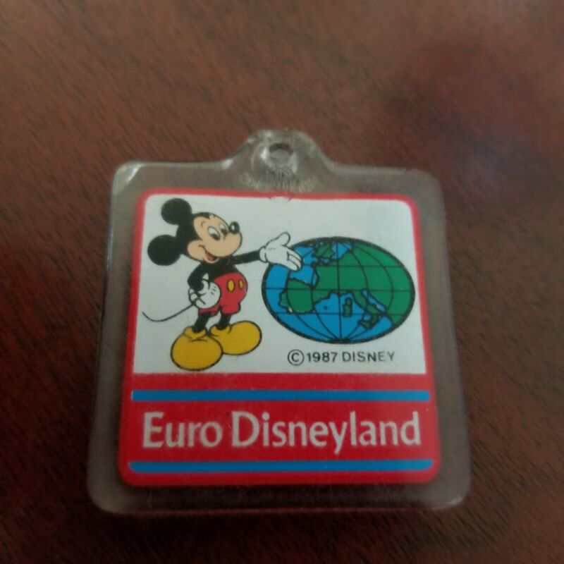 Vintage Euro Disneyland 1987 Mickey Mouse Plastic Key Chain square acrylic