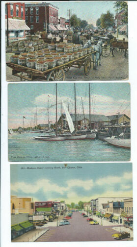 Title (ebay affiliate link): Port Clinton OH Ohio 3 Postcards Main Street Wharf Scene Loads of Peaches