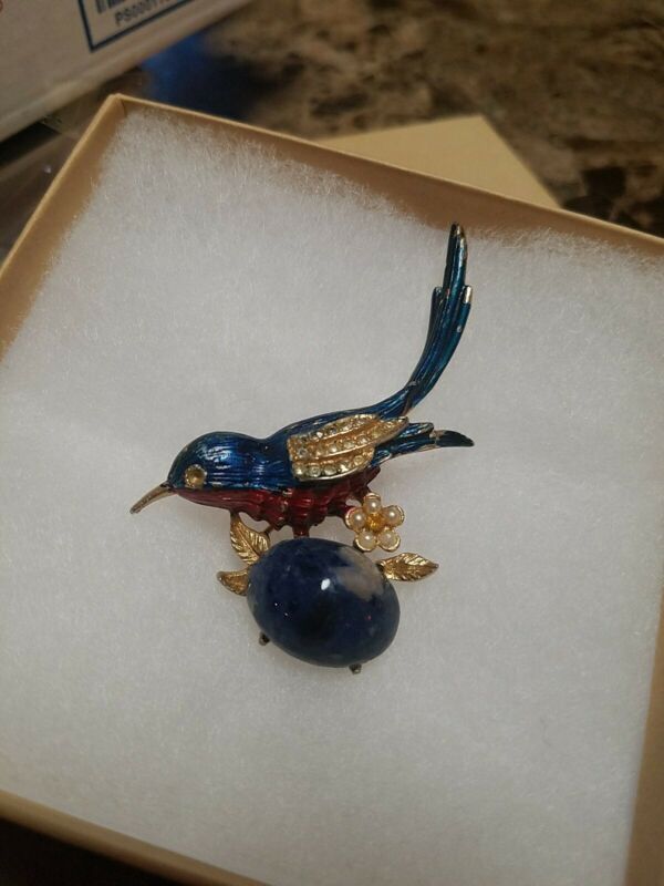 Title (ebay affiliate link): Beautiful Antique Large Robin with Blue Lapis Egg, Seed Pearl, and Rhinestones