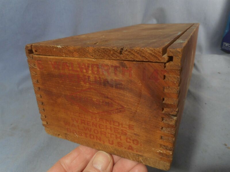 VTG WALWORTH CO. STILSON BOSTON Wrench Wooden Box with Sliding Lid & Dovetail