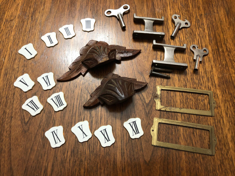 Vintage Hardware Junk Drawer Lot ~ Brass, Wood Pulls, Clock Keys