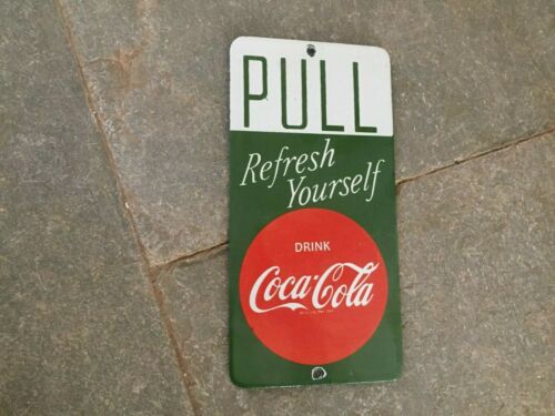 Title (ebay affiliate link): Porcelain Push Coca Cola Enamel Sign Size 4" x 8" Inches