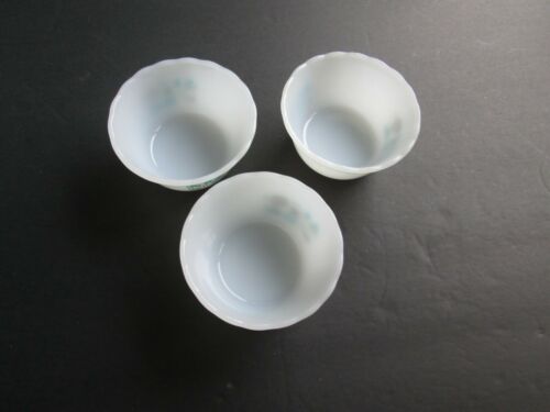 Set of 3 Royal China Blue Heaven Custard Cups. Milk Glass, Ruffled Edge