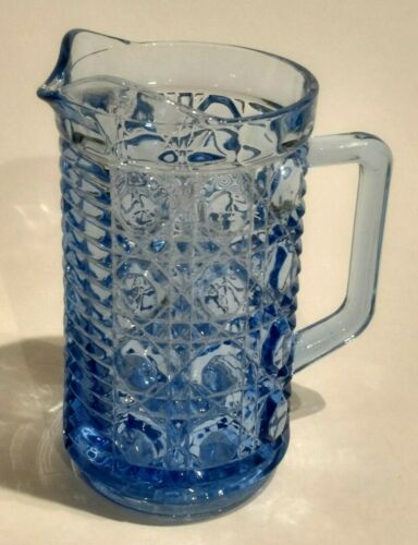 Title (ebay affiliate link): Vintage Blue Indiana Windsor Pattern Glass Pitcher 6" Tall Syrup Milk Cream