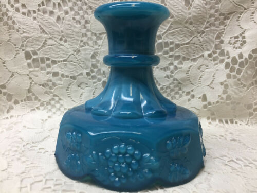 Blue Milk glass Fairy lamp candle holder candlestick art stick grape slag opaque