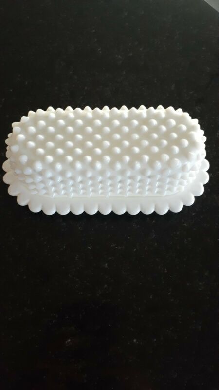 Vintage Fenton Milk Glass Hobnail Oblong Butter Dish With Lid