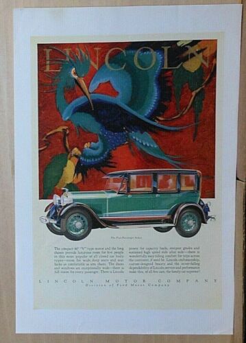 Title (ebay affiliate link): 1928 magazine ad for Lincoln -5 passenger Sedan, Art Deco bird by Stark Davis