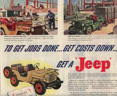 Title (ebay affiliate link): 1946 Jeep 4-WD Universal, Large Size USA Magazine Ad