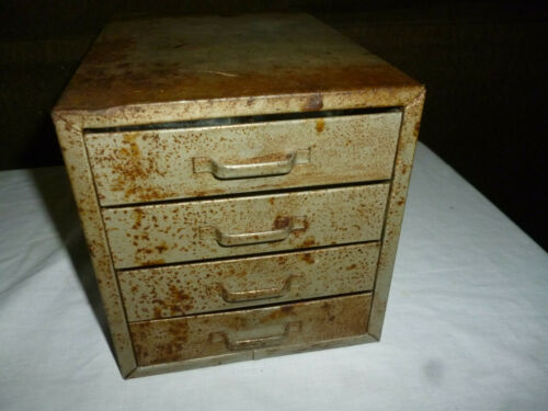 Vintage 4 Drawer Metal Tool Chest Cabinet Jewely Machinist Hobby Parts Electric