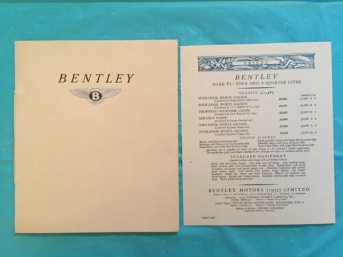 LOT 1949 Bentley "MARK VI" Car Dealer Showroom Brochure + Prices Single Sheet