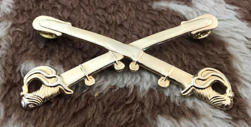 Title (ebay affiliate link): U.S MILITARY CAVALRY METAL HAT BADGES PIN CROSSED SABERS SWORDS Large 3 1/2 in