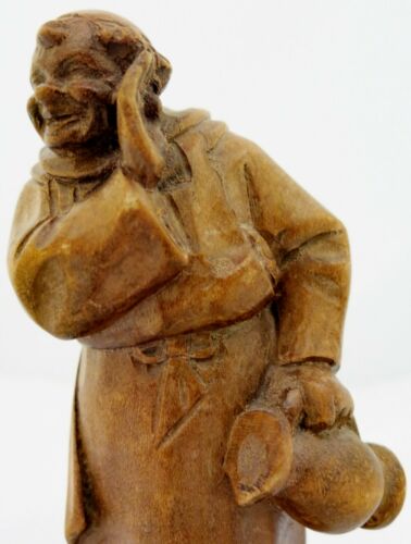 A Holzschnitzerei Carved Monk Figure with Growler