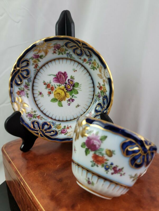 Antique Bee Hive Shield Mark Porcelain Hand Painted Cup And Saucer Gilt